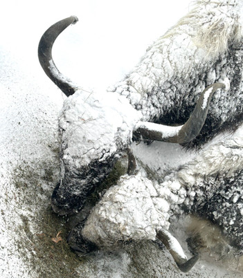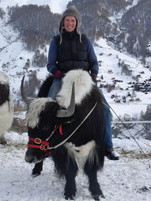 Mais ce qui distingue Nayan le plus des autres yaks, c'est qu'on peut le monter. Il a toujours été doux et attentif à ne pas faire du mal avec ses cornes, c'est la raison pourquoi j'ai osé monter sur son dos. J'étais heureuse comme une gamine d'être assis sur le dos d'un yak et je me laissais promener par Nayan à l'intérieur du troupeau. Je devenais centaure, femme-yak, graçe à lui et je vivais le troupeau différemment sur son dos. Nayan a senti mon émotion profonde et s'est ainsi que ce yak timide s'est ouvert à moi et que nous avons noué une relation très fine, très spéciale. Les moments sur le dos de Nayan font partie des moments les plus heureux vécus avec les yaks.