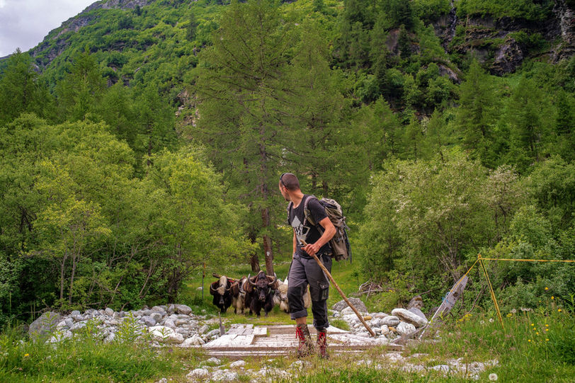 Parcours de la Giette à La Luette et vis versa pour le retour. C’est une marche de 4-5 heures en descendant - ou remontant - la vallée pour amener les yaks sur un pâturage plus bas - et les remonter après deux-trois semaines.
